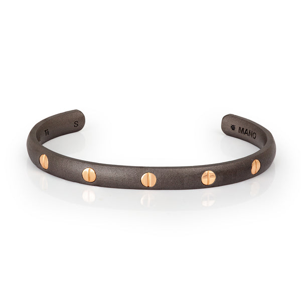 BRACCIALE RIGIDO GRANDE UOMO LINEA BOOST IN TITANIO E 5 VITI IN ORO ROSSO 9 KT.