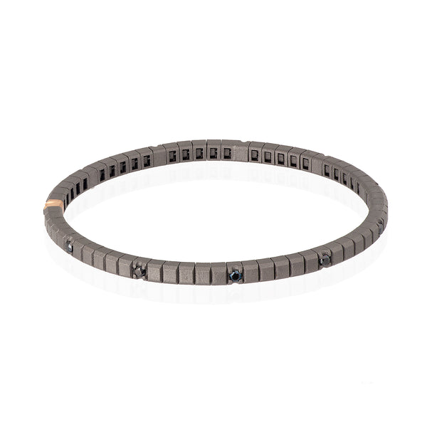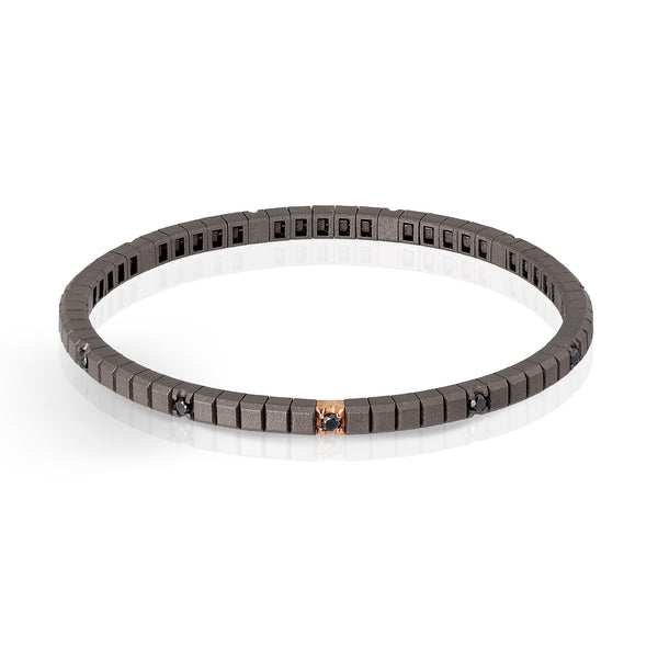 BRACCIALE TENNIS LINEA LOOP IN TITANIO, ORO ROSSO 18 KT E 11 DIAMANTI BLACK DA 5 PUNTI.