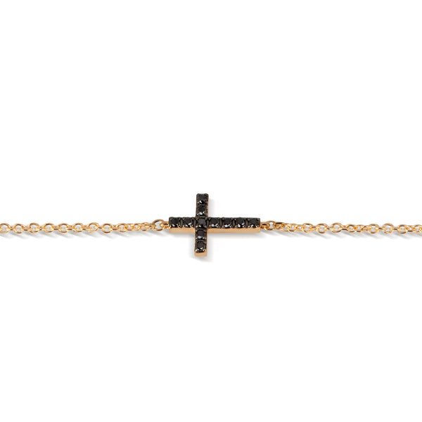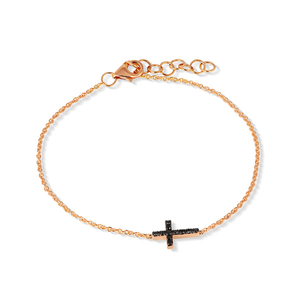 BRACCIALE UOMO CON CROCE IN ORO ROSSO 9 KT, CATENA ORO ROSSO 9 KT E DIAMANTI BLACK.