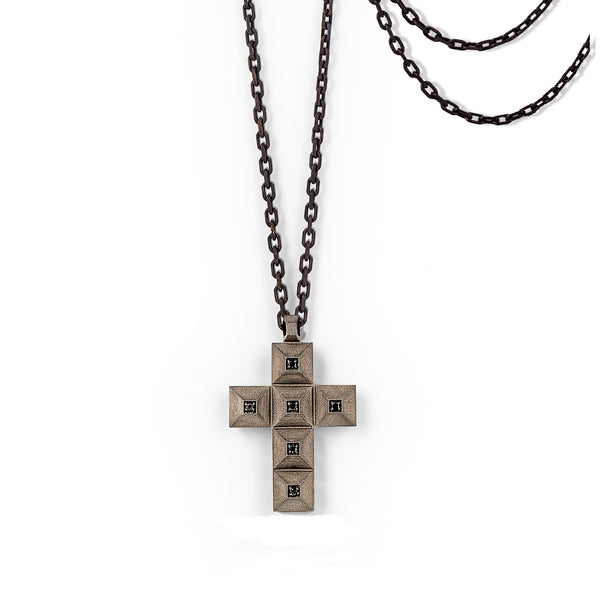 CROCE GRANDE LINEA WATT TITANIO E 6 DIAMANTI BLACK, ORO ROSSO 9 KT E CATENA.