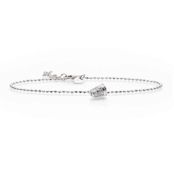 Elegante braccialetto con catena diamantata, il che lo rende particolarmente brillante. Puoi scegliere la catena in 2 versioni: da 17cm o da 14cm. Entrambe le versioni hanno in più circa 2,5 cm di anellini di regolazione finali, per aderire perfettamente al tuo polso. Il Ditale è disponibile con 4 preziosissime varianti: con Pietre bianche, con Pietre azzurre, con Pietre rosse e con Pietre nere.