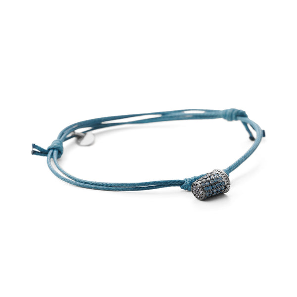 Bracciale Keep Out in poliestere con ditale classico (1 cm) con pietre. Chiusura scorsoia regolabile al polso.