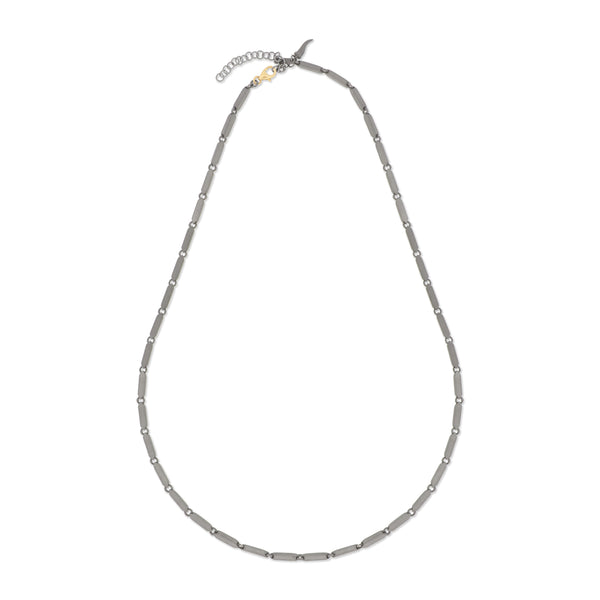 COLLANA NAVETTE IN TITANIO E CHIUSURA MOSCHETTONE IN ORO GIALLO 9 KT