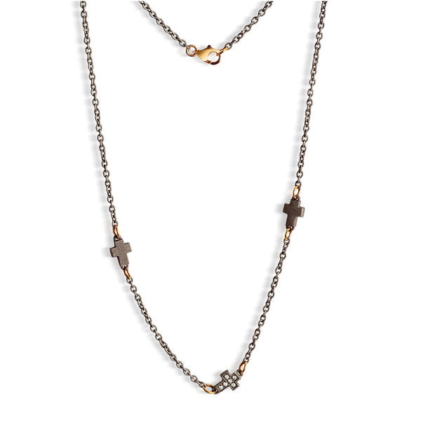COLLANA UOMO IN TITANIO COMPOSTA DA 3 CROCI E DIAMANTI WHITE, ORO ROSSO 9 KT E CATENA.