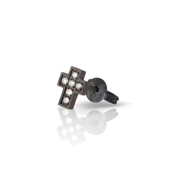 MONO ORECCHINO UOMO CROCI IN TITANIO E DIAMANTI WHITE.