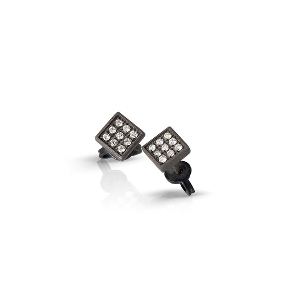 ORECCHINI UOMO QUADRETTO GRANDE TITANIO E 18 DIAMANTI WHITE.
