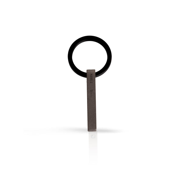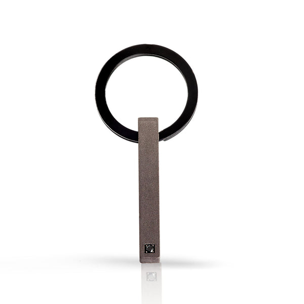Portachiave barretta in titanio. Il portachiave a forma di barretta è caratterizzato dal diamante black da 3 punti incasstonato nella parte inferiore al centro della barretta. Non può mancare il marchio MANO|J., impresso al laser sulla parte posteriore del portachiave. L'autenticità e la leggerezza rendono il portachiave l'oggetto perfetto da accompagnarti ovunque.
